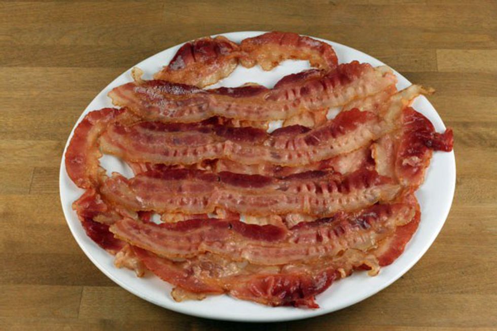 2) Put desired amount of bacon strips on top making sure not to overlap.