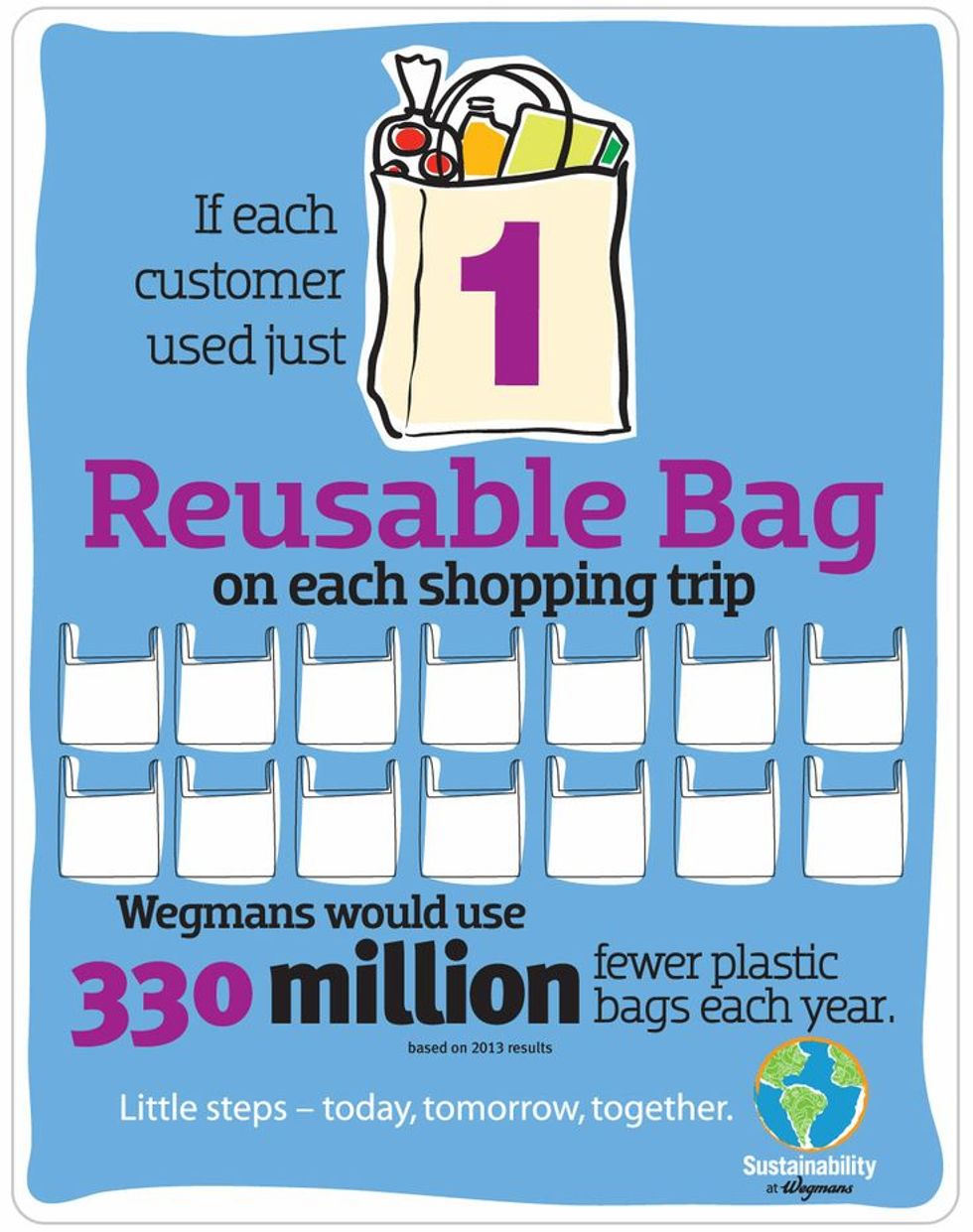 This one is pretty simple, but often over looked. Here is a link that will share with you 25 Reasons to Go Reusable https://www.reusethisbag.com/25-reasons-to-go-reusable.php Switching to reusable grocery bags can make carrying your groceries easier, some stores offer a discount if you bring your own bags, and you are greatly reducing the amount of waste going to our landfill every day.