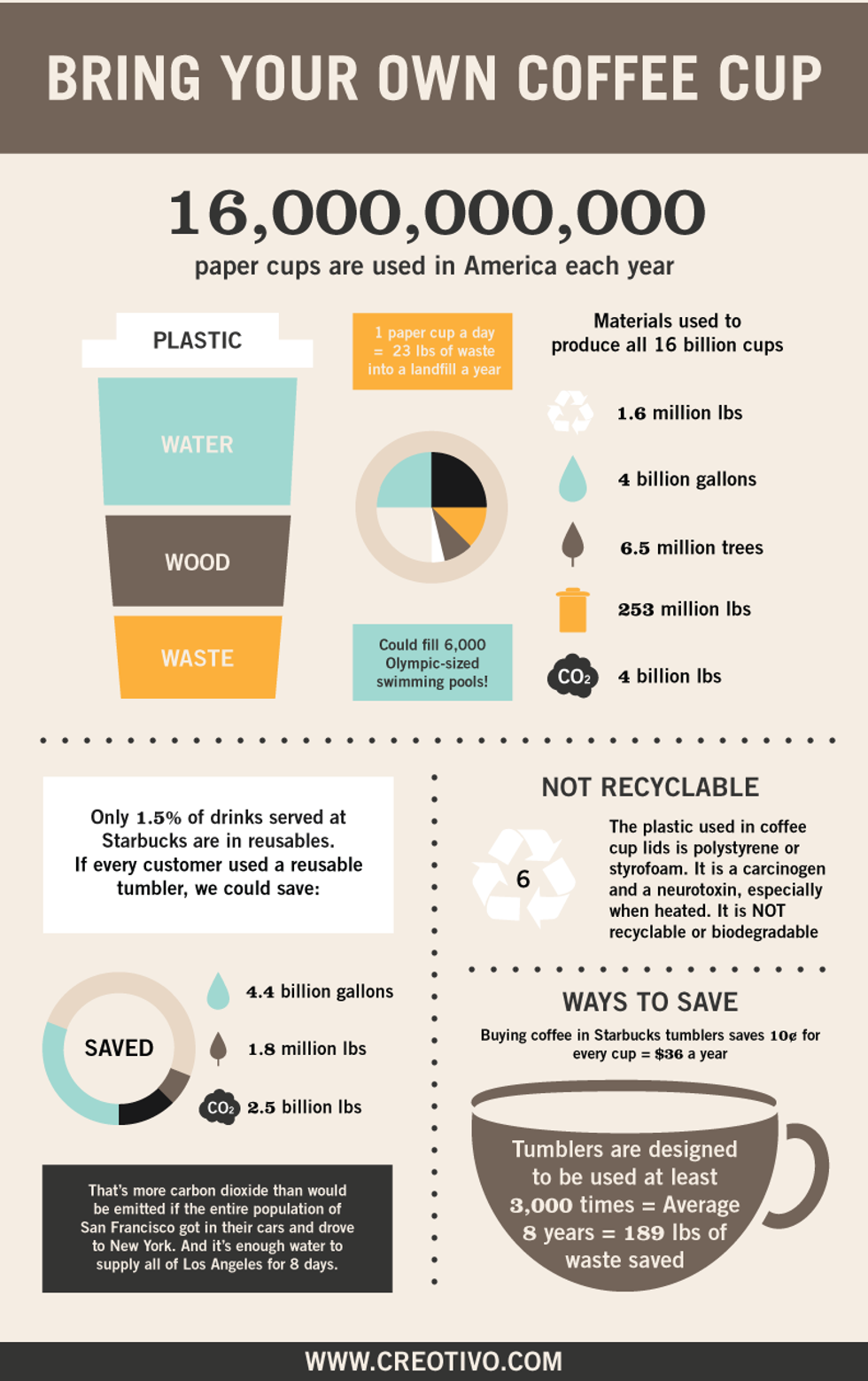 I get its really easy and convenient to use plastic silverware at lunchtime or paper plates and solo cups at your Friday tailgate, but this plastic doesn't break down and contributes to our waste. You can do a big part by simply packing a real fork for your lunch, or investing in a nice refillable water. Not only will this save you money, it will help save the environment.
