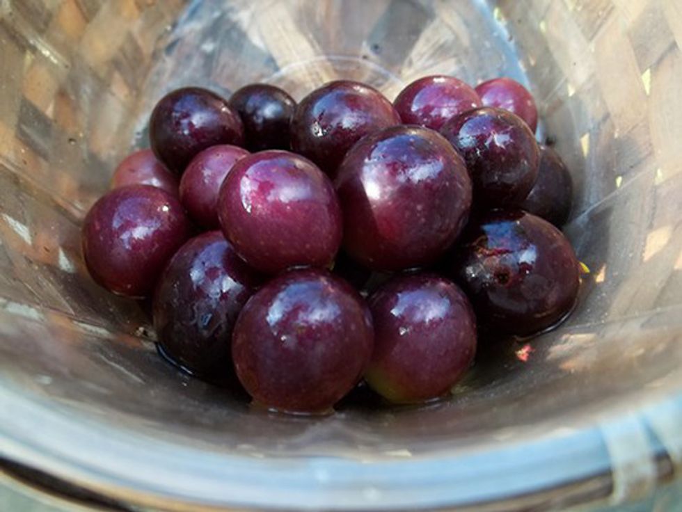 Antioxidant rich foods like berries, cherries, and darker colored fruits help reduce inflammation and decrease muscle soreness. You can drink tart cherry juice, or go for the whole fruit, like these freshly picked muscadine grapes, or black raspberries. When possible,