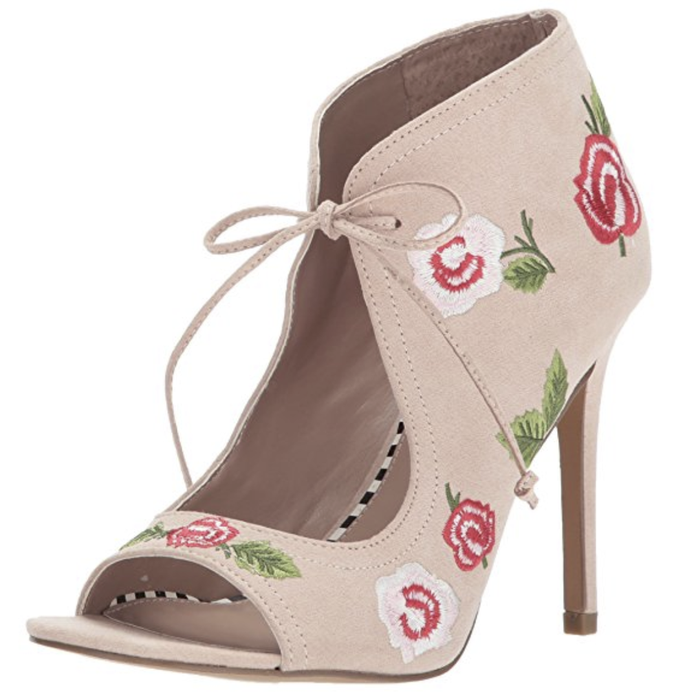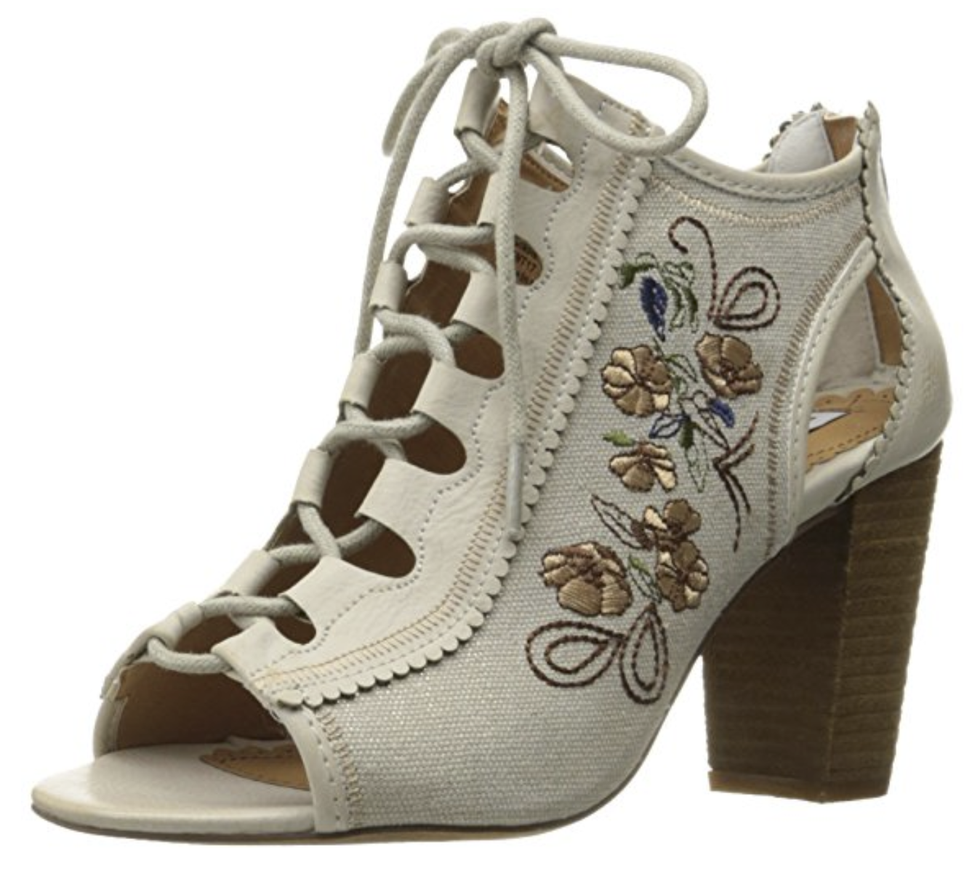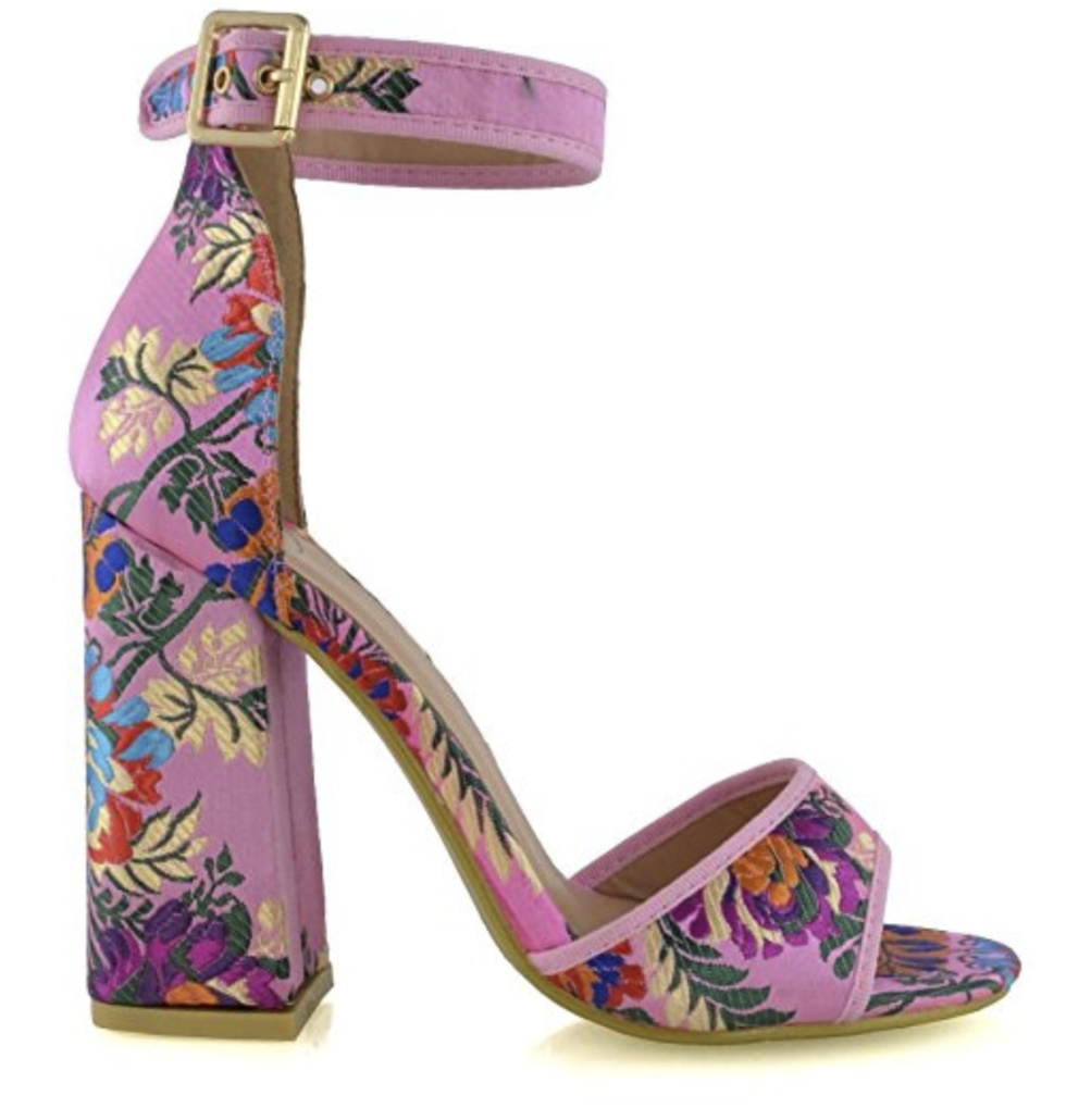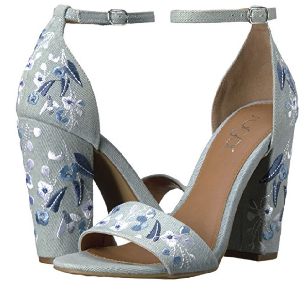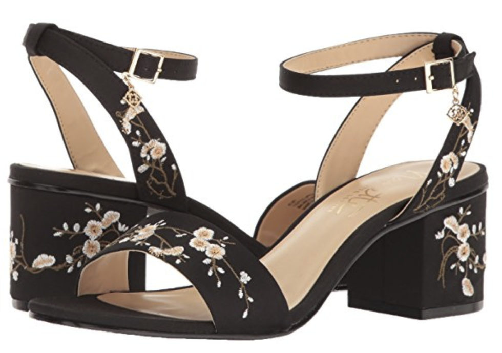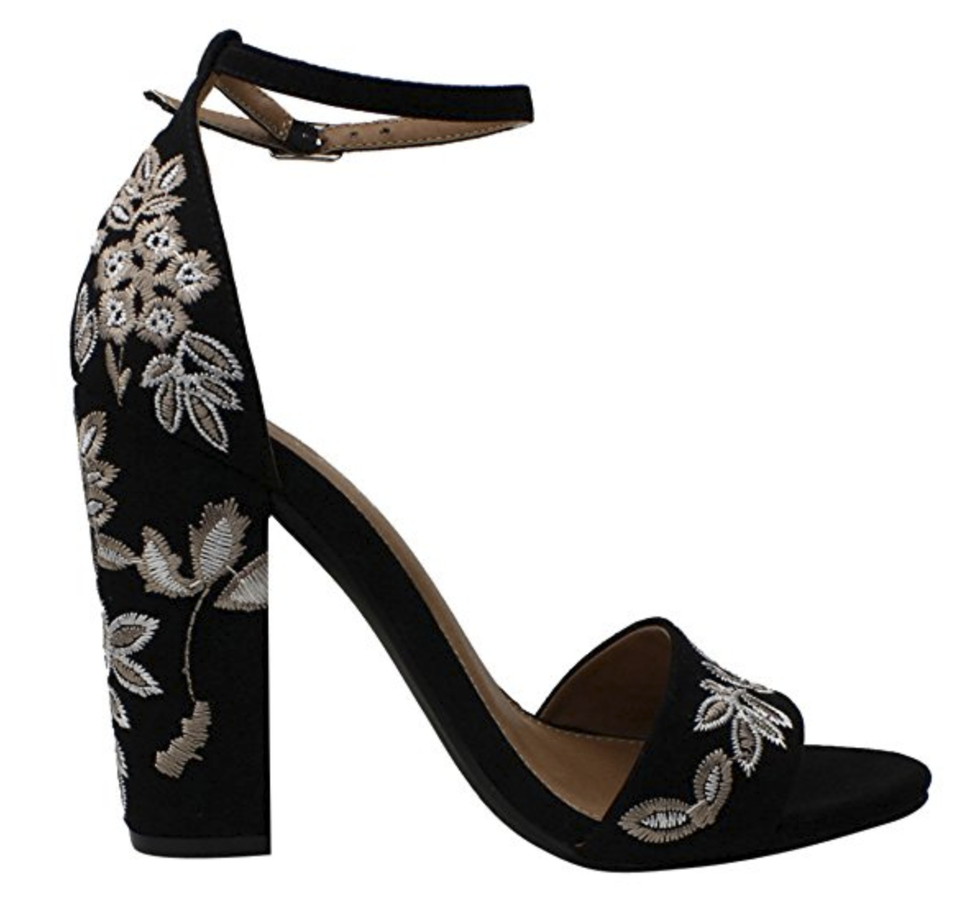 $47.99 - $79.00 (Sizes 6-7.5, Colors Black and Blush)2. Sugar Women's Silck Flower Floral Embroidered Block High Heel Sandal