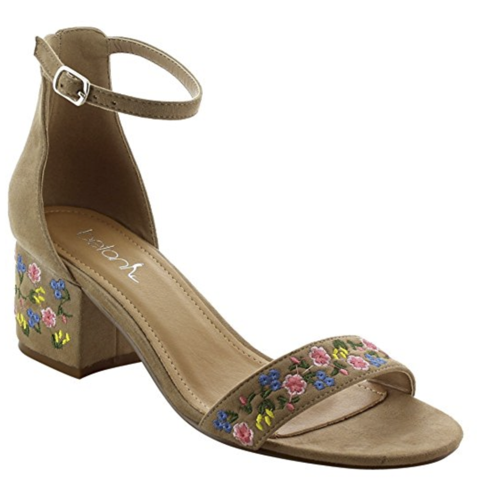 $22.99 - $54.99 (Sizes 6-10, Colors Black, Taupe, Tan, Off White)10. Beston DE29 Women Floral Embroidered Buckle Ankle Strap Block Heel Dress Sandal