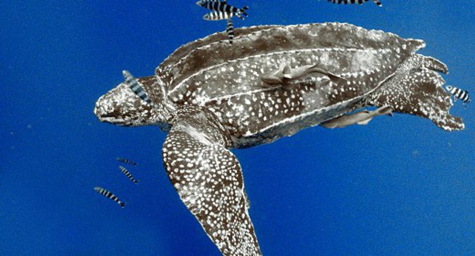 The population of the worlds largest turtle is dropping at an alarming rate. Pacific populations have declined over the last twenty years from over harvesting and interactions with fisheries. Leatherbacks feed on jellyfish, which can get a bit confusing for them when they see plastic bags floating in the ocean, which can kill them. There are as few as 2,300 adult females now, making the Pacific leatherback the worlds most endangered marine turtle.