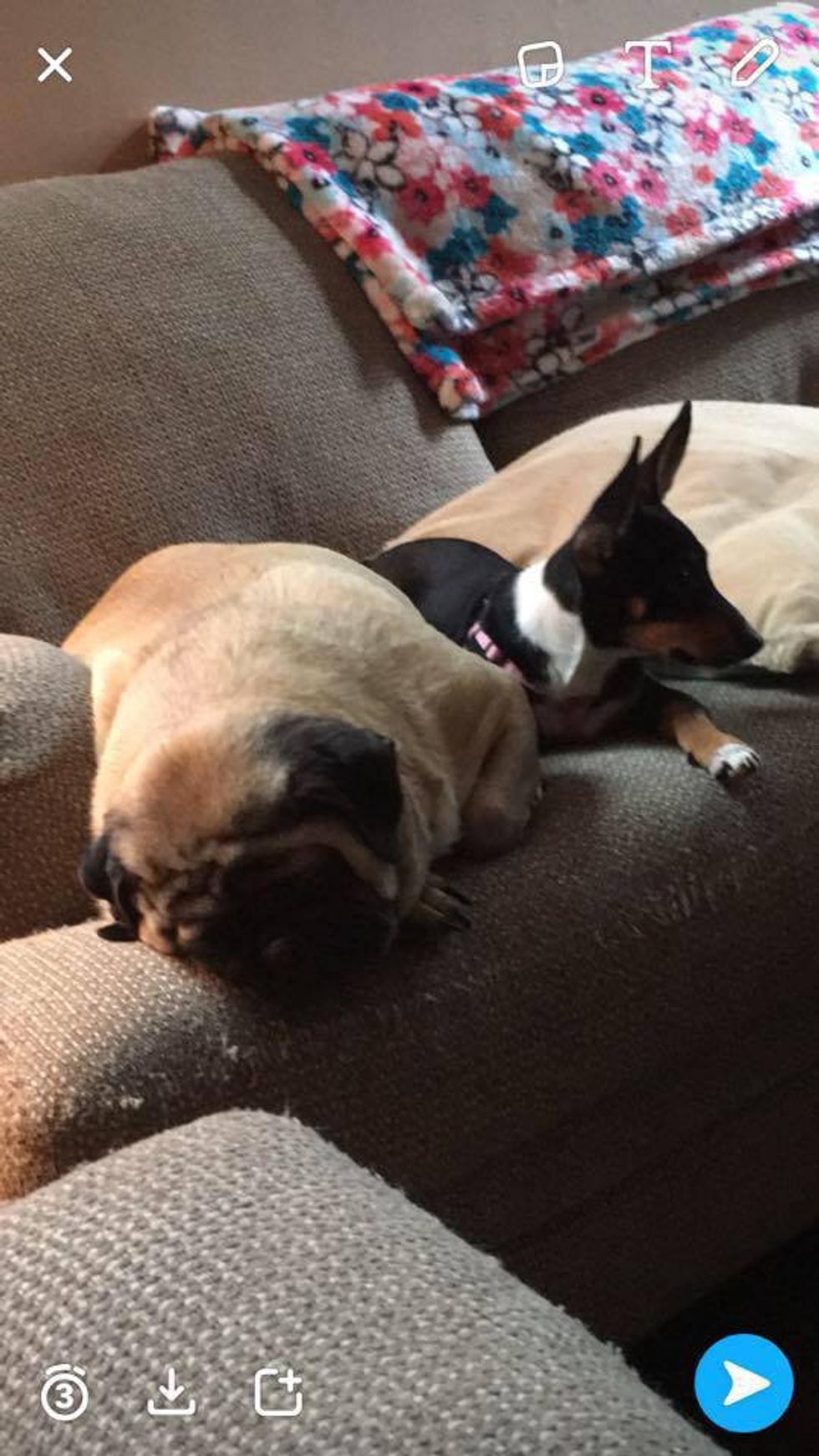 When you have a dog, you don't need to worry about being cold. They will gladly keep your feet warm for you, plus you always will have an extra fuzzy and warm pillow laying around.