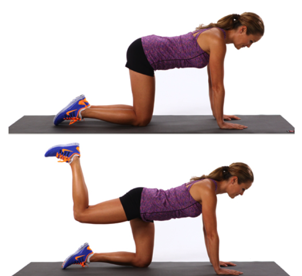 One way to work on the butt is with this easy exercise. The repetitive motion not only lifts the butt, but tightens the muscles around it. Completing this motion slowly and controlled leads to the best results. Try 10 kicks per leg.