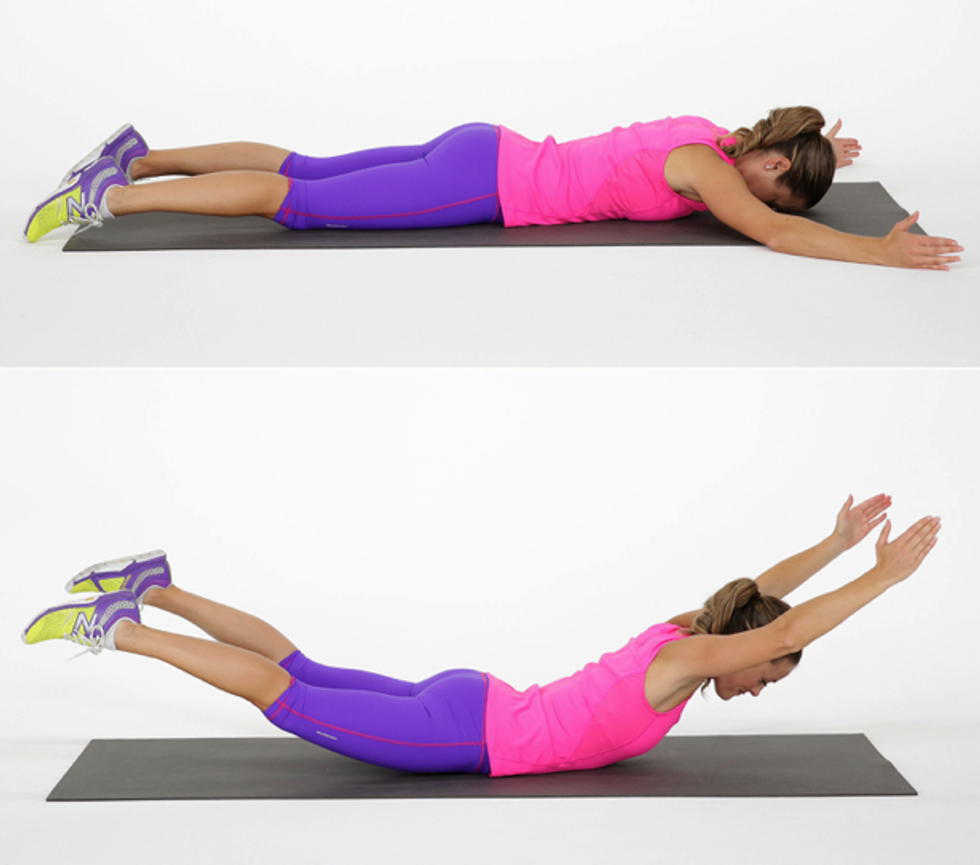 Applying both of these will allow for a tightening and a stretch all in one. Pushups seem basic, but make sure to focus on the form rather than the motion. As for superman, the extensions of the arms are crucial for the exercise to work. Try doing 3 pushups followed by 2 supermen.