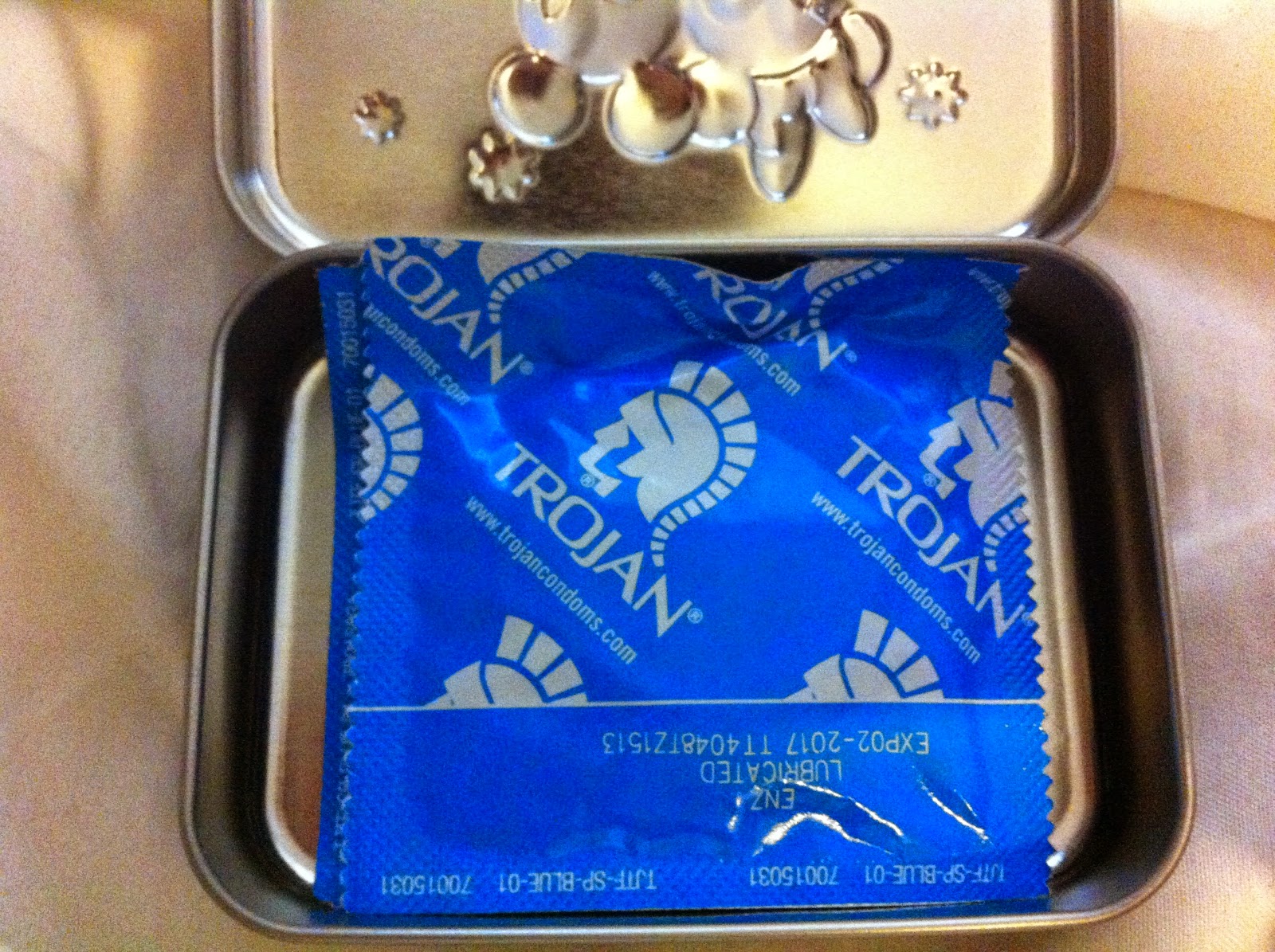 By now you should know to avoid any place where your condom would be subject to heat or friction. The best place to store your condoms is somewhere that is cool and dry. I store my condoms in a old first aid box in my purse. Other viable places to store condoms are in these cool condom tins, makeup bags, pouches, wooden boxes or anything you have on hand that could keep the condoms away from the elements. Also, do not store your condoms anywhere in your car or any place that experiences temperature changes.
