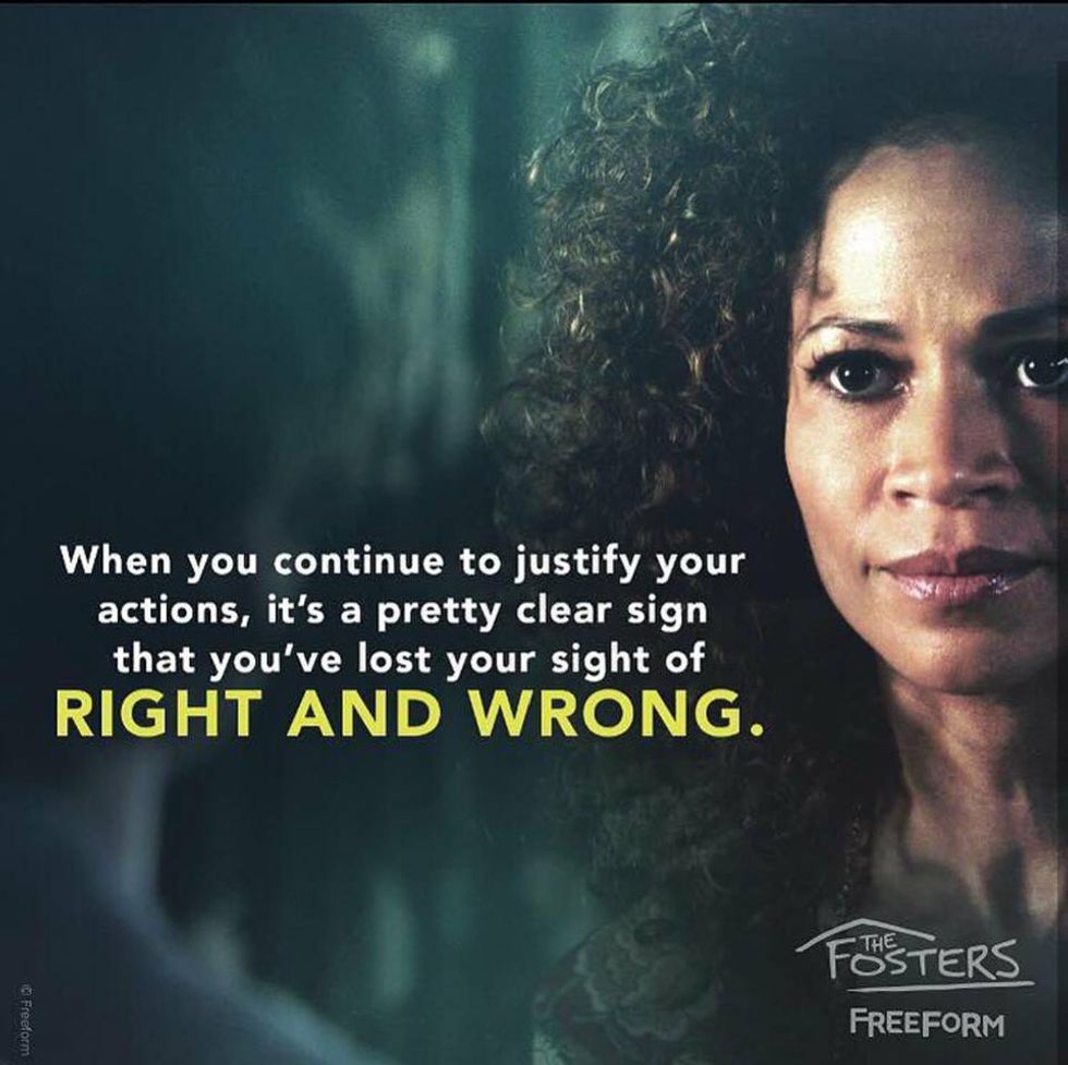 10. "When you continue to justify your actions, it's a pretty clear sign that you've lost your sight of right and wrong." -Lena Adams Foster