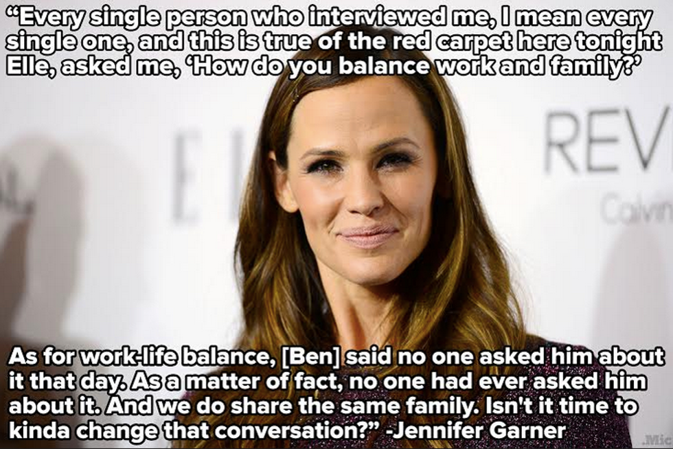 Garner is one of the most successful actresses of her time. She criticizes society's tendency to shame women for their success, as if any success has come at the expense of their family. She claims that there is a double standard in the media and speaks out about how these standards are damaging to both women and men.