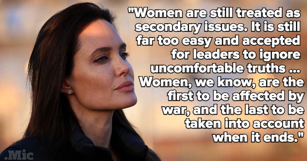 One of the most famous actresses of her time, Jolie has also been heavily involved with charity work. She has tried to raise awareness about women's issues, particularly in third-world countries. In her speech at the African Union Summit she highlights women's treatment in impoverished and underdeveloped countries, criticizing the way that women are often treated as second-class citizens.
