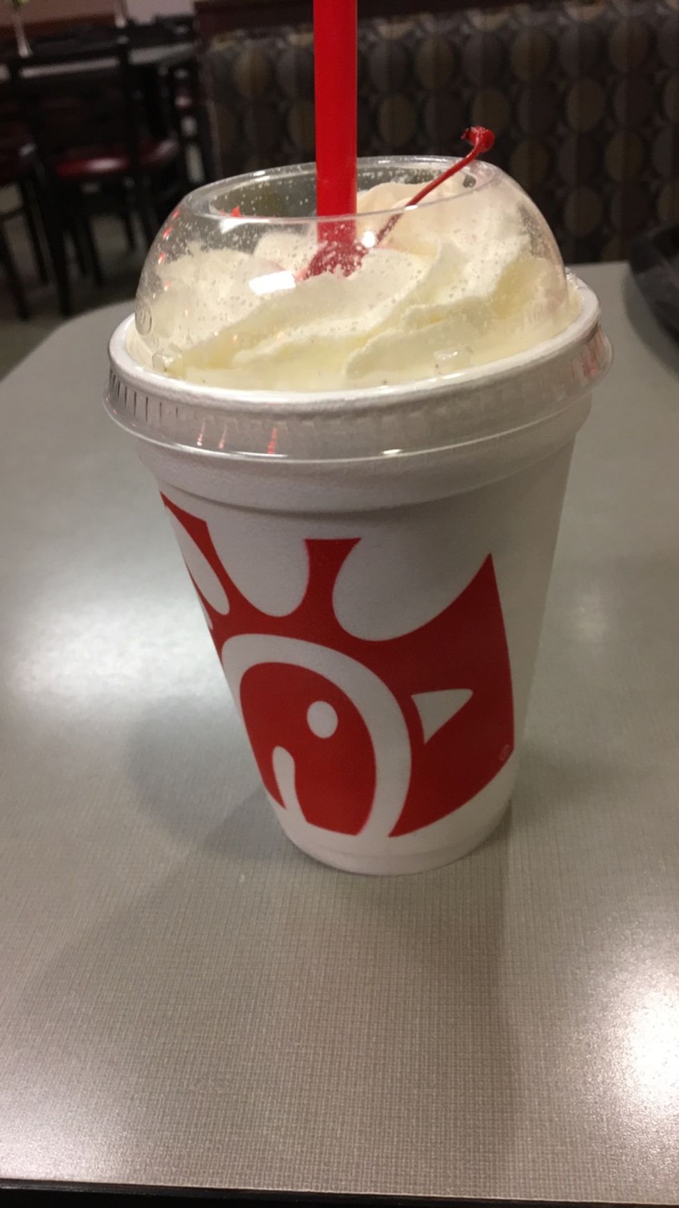 Chick-fil-A offers mostly chicken, (if you did not know that) but most people prefer to go there, especially when there is a group of people hanging out together because there are a lot of options on the menu. Also, just being honest, most people love Chick-fil-A, so most of the time it is a no brainer where to go to eat. The only bad thing is that they close at 10pm. If you want a late night snack or meal, you will not be able to go there! My favorite item on the menu would be the chicken sandwich!
