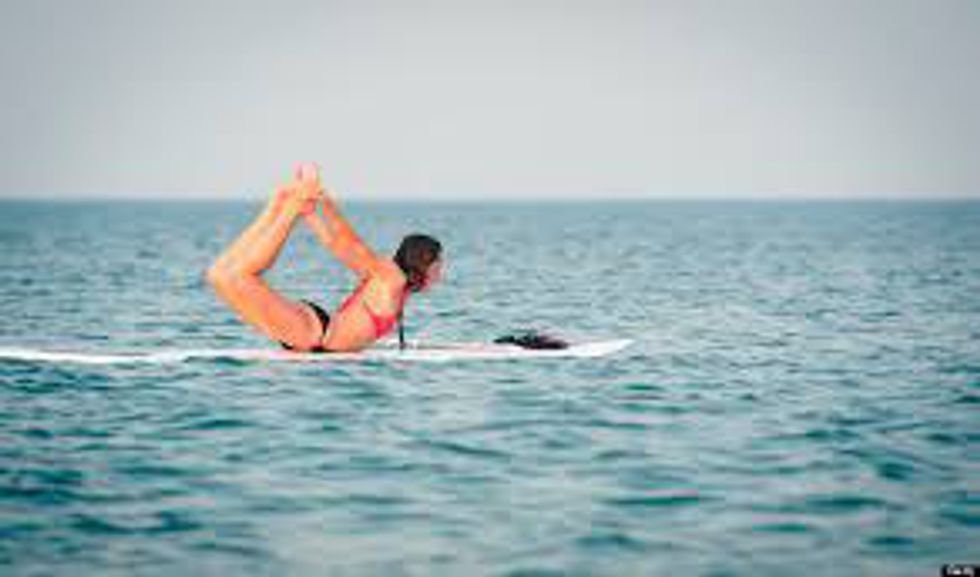 Head out to any body of water, and paddle out and then start your practice. Enjoy the rhythm of the waves and warmth of the sun.