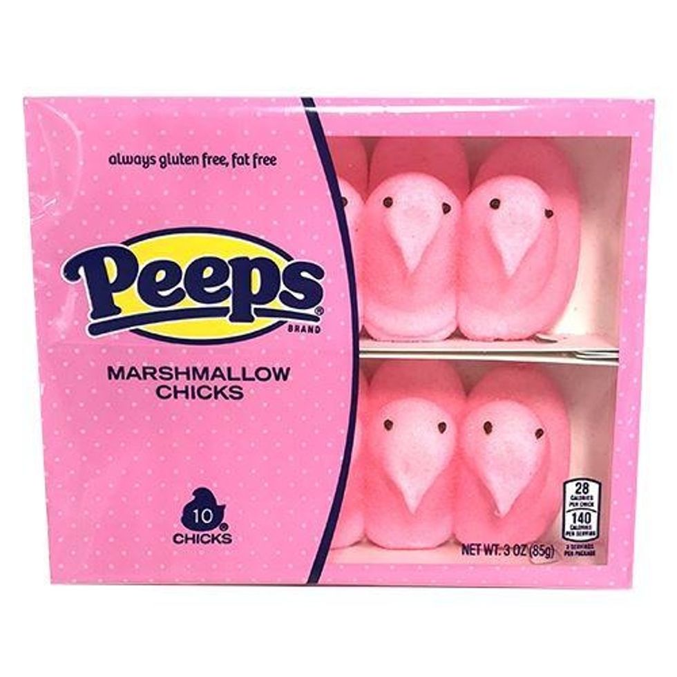 These marshmellow delights comes in all shapes, including bunnies, Valentine's hearts, and Halloween pumpkins. Even though other shapes are available, the traditional chick is by far the most popular.