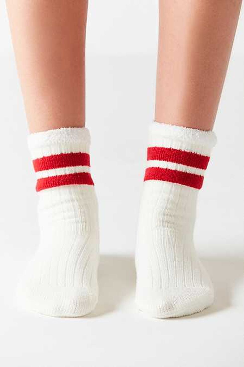 These sporty fuzzy socks found on the Urban Outfitters website are the perfect gift. Considered cute and sporty with sneakers or great festive fuzzy socks for the Holiday Season.
