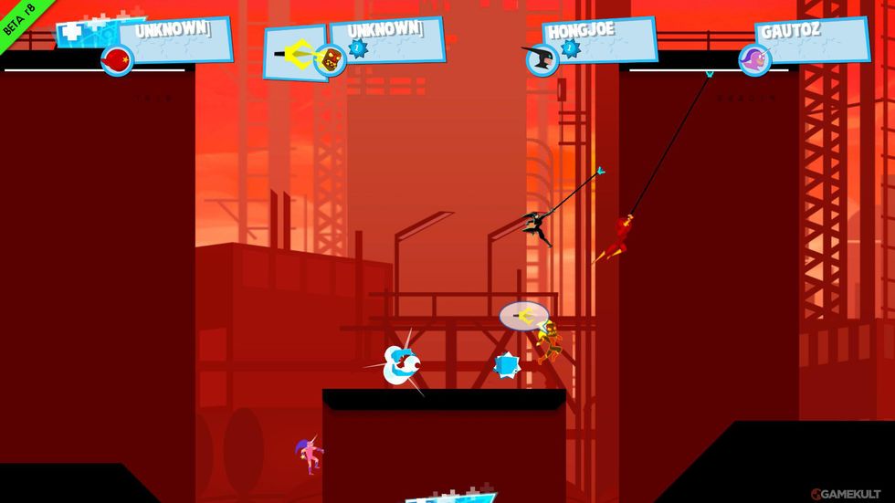 Speedrunners is a particularly competitive game, in which players race through a looped stage while the screen grows smaller and smaller over time. Items like the claw (the claaaaw) and rockets will throw your pal, or you, into death as the screen closes around them. Even items like a bomb can also be used to either propel your friend forward or toss them backwards, showing how much you truly value their companionship.