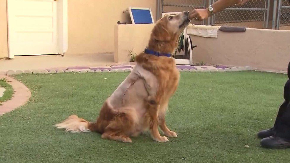 In May, a golden retriever named Henry was found at Newport Beach with a large tumor, abandoned by his owner. He was rescued and with money from donations the tumor was successfully removed. While it's sickening to think of someone abandoning their pet, faith in humanity is restored with his rescue.