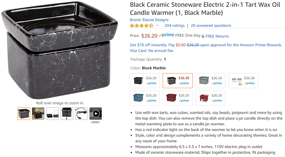 It's time to have your place smelling nice, so get yourself a wax burner like this one, buy your favorite wax of choice, and it'll be great! I have a few of these of my own and because they're simplistic looking, they're great accessories for home decor!