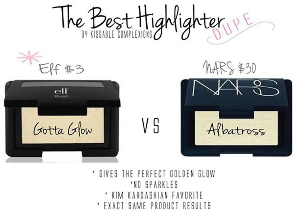 Another NARS vs. Elf product that costs you one-tenth of the cost if you go with the Elf option which still glows on your cheekbones perfectly.