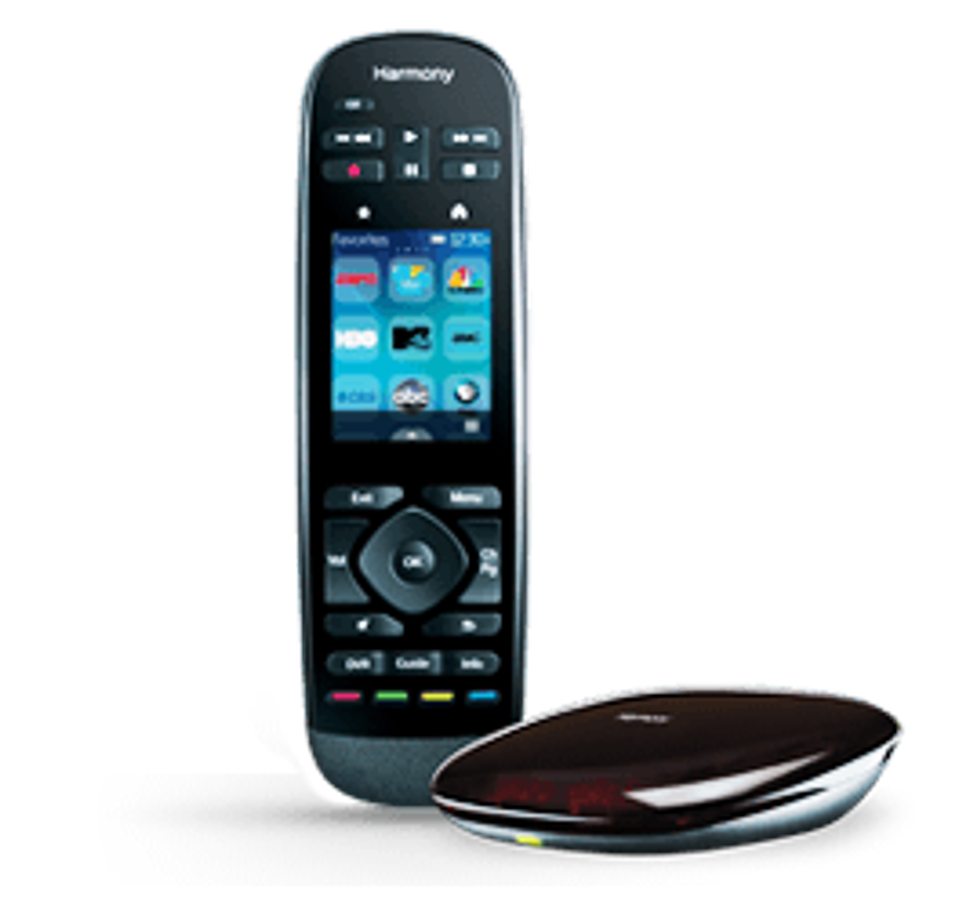 The Logitech Harmony l is a universal remote that can control consoles such as Wii, Xbox and Playstation as well as the TV. It also has an app for both iPhone and Android that can be used in place of the physical remote. The Harmony Hub allows devices that may be in shut cabinets to be controlled with the remote as well... So your boyfriend can sit back, relax and control everything from a single remote.