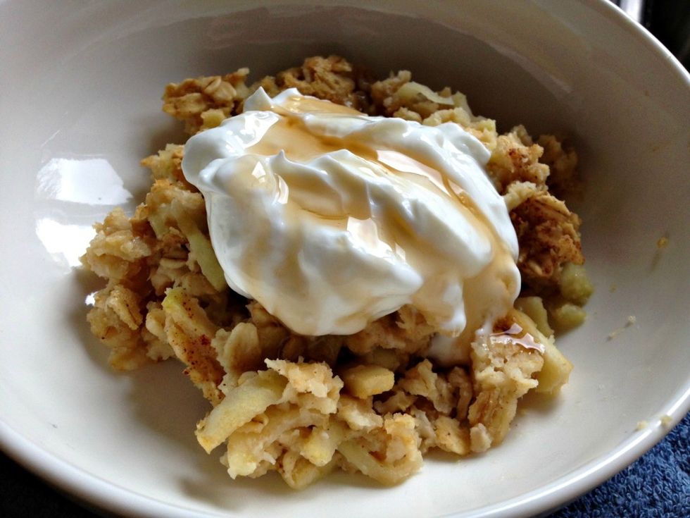 If you have time to sit down and eat solid breakfast, try this! It is personally my favorite option, especially if I know I won’t be eating lunch for a long time. It is so filling that sometimes I can eat it for breakfast at 10 AM and not be hungry until 2 or 3 PM. On days when I have class from 10:10 am – 4:45 pm (Yes, I know. It is as horrible as it sounds) and I have a lot of homework to do in between classes, I’ll eat this and grab an apple to eat while walking to my last class. It is great way to start my busy day.