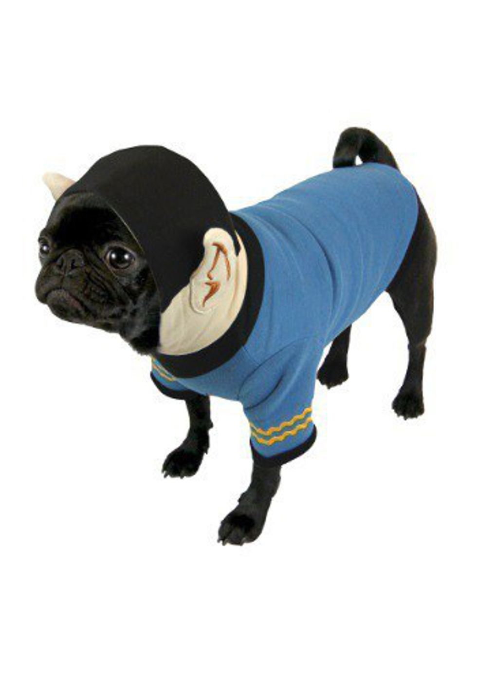 Let your pup “live long and prosper” (yes I know it’s cliché but it’s cute) with this adorable uniform from HalloweenCostumes.com. It’s got the classic Spock pointy ears and warm, comfy cotton. Perfect to take your dog for a spooky walk Halloween night.