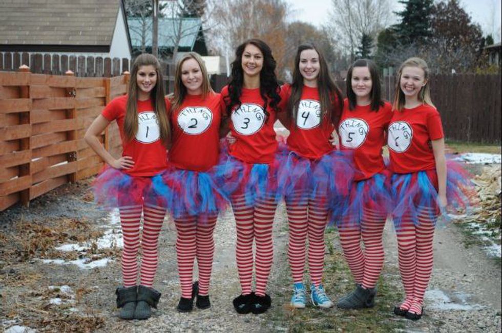 Or as many Things as you can get together! Create the shirt yourself or order it online, grab it from the store, whatever fits your budget! A simple costume that you can easily make your own with a blue wig, blue temporary dye, stockings, a tutu, makeup, any or all of the above.