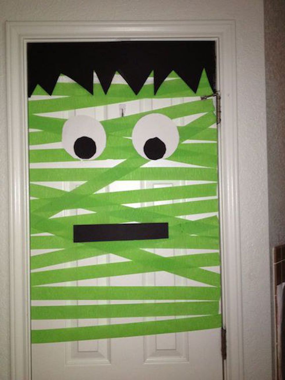 Here's another awesome door decorating idea! All you would need is green streamers, white and black construction paper, scissors, tape, and a ruler. The instructions are pretty self explanatory, and that's why this is a really easy way to decorate.