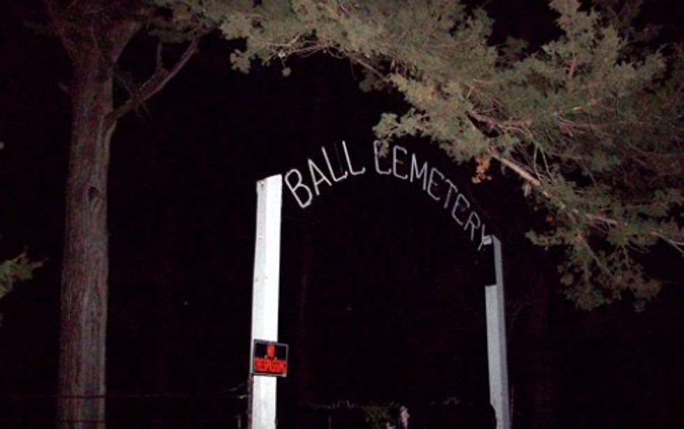 Originally used as a private family cemetery during the 1800s, it no longer became family-explicit when U.S. Marshall William "Rattlesnake Pete" Liddiard's body was brought to Ball Cemetery to be interred. Now, those who visit report seeing an apparition of a tall male roaming the cemetery. However, it is believed that this ghost has a bad temper, and often inflicts wounds on those who stop by. Another ghost is that believed to be of Mary Mumford, one of the residents buried there. It has been reported that Mary's voice can be heard emanating from the cemetery, that she tugs on clothing, and then laughs. People have also reported bringing a Ouija board to the grave of Mary, only to be told that a R-A-V-I-O was present. When asked what it wanted, it simply replied with D-K-O. The meanings of these two results are unknown. P.R.I.S.M. has done extensive research here, with escorting from a deputy and permission from the neighbors who guard the cemetery. Their findings can be heard/seen here: http://www.doyouseedeadpeople.org/37/Ball-Cemetery...