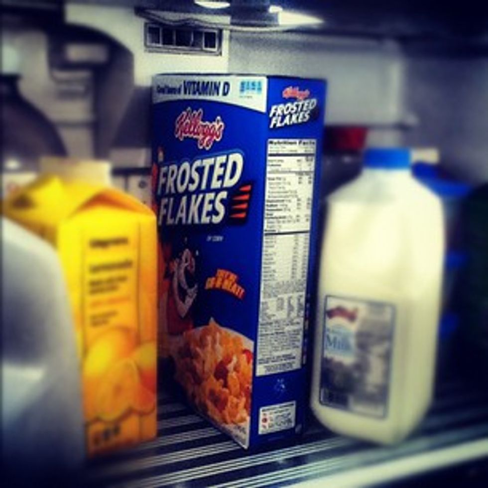 Cereal has finally found a comfortable home...next to the milk in the fridge.