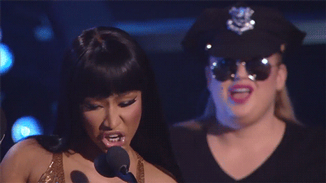 Rebel Wilson stole the show when she came out dressed as a cop to present the Best Hip-Hop Video award and made a joke about how hated the police are, and how she only hates police strippers, which then offended some people. She then proceeded to rip off said cop outfit into a more appropriate outfit bashing "stripper police." If that weren't enough, Rebel then blessed us with this perfect gif after making the glorious facial expression she made when Nicki called out Miley: