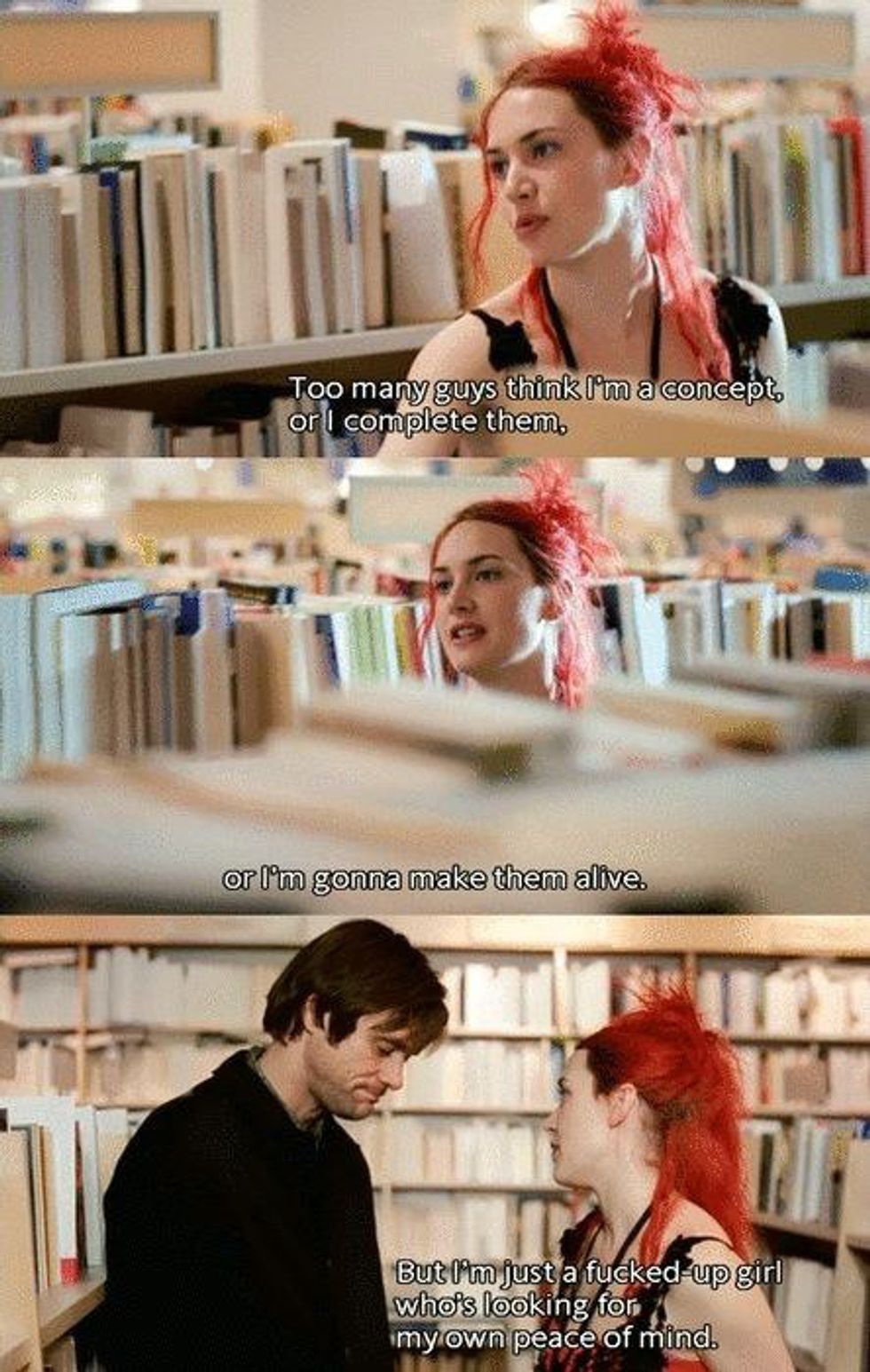 In "Eternal Sunshine of the Spotless Mind," soft-spoken Joel (Jim Carey) finds a company that will erase any evidence in his brain of his relationship with eccentric, exciting Clementine (Kate Winslet). In this trippy journey through loss of love and brain alteration, we question the significance of memories, the human tendency to repress difficult memories, and the idea of destined soulmates. It also puts forth the idea that a "manic pixie dream girl" like Clementine is a real, emotional being who shouldn't be constantly idealized.