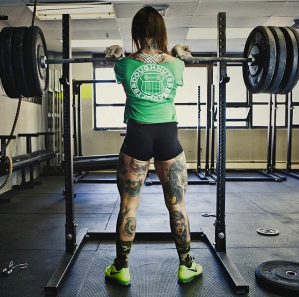 This gym owner and creator of Doughnuts & Deadlifts posts images of power lifting, barbells, hiking, tattoos and heathy food.