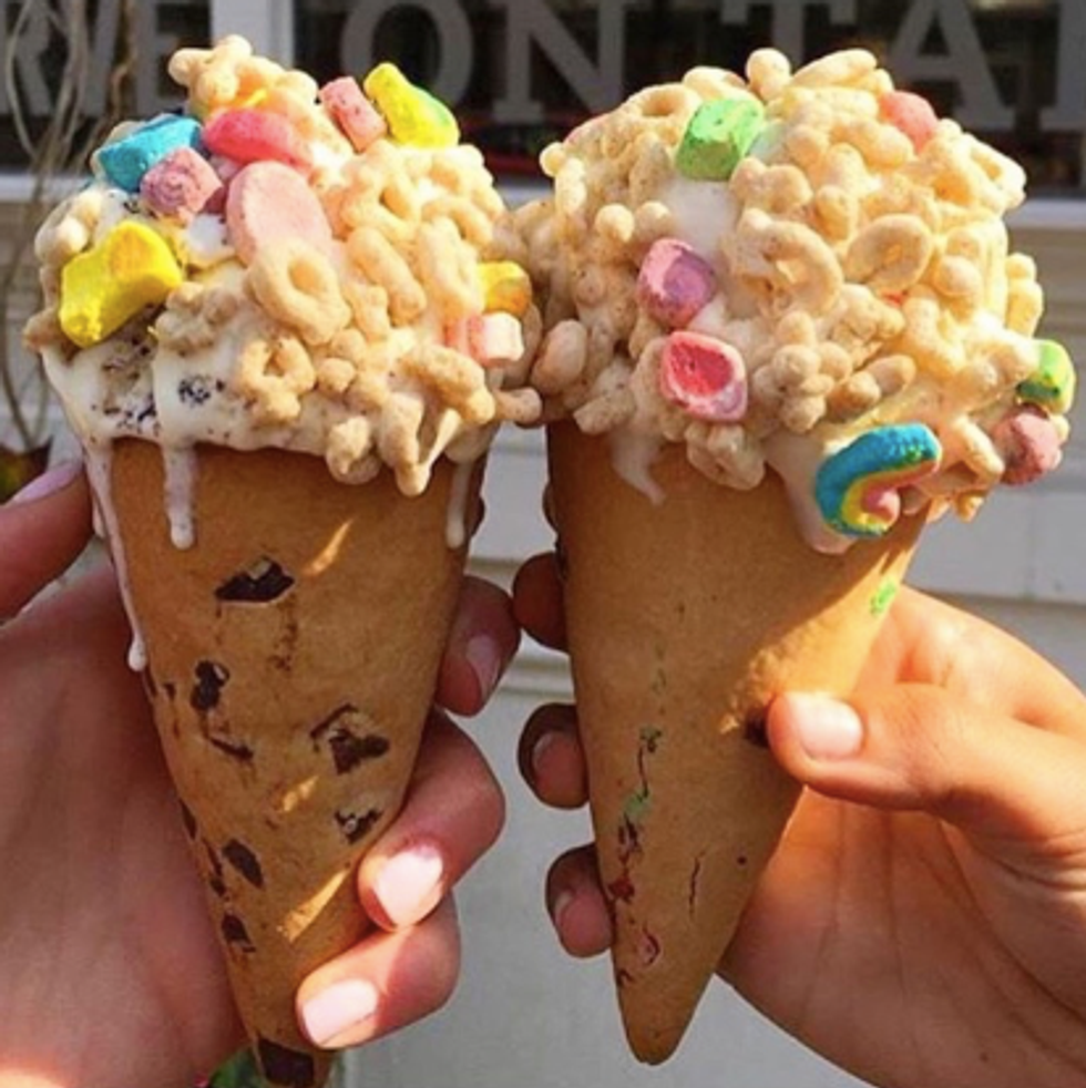 Offering delicious ice cream with unique toppings, this place is a hot spot for good eats, and awesome pictures. A customer favorite is the "Shamrock" with Lucky Charms cereal on top. #YUM