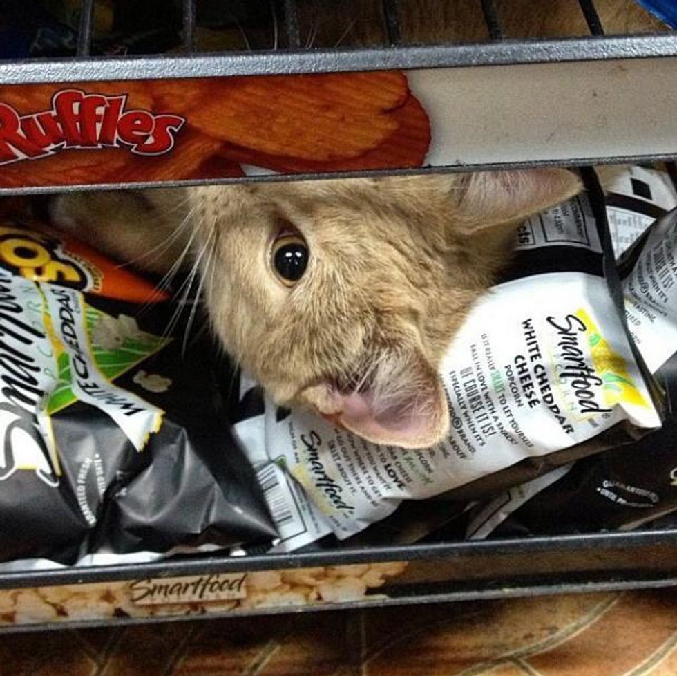 So maybe dogs aren't really your thing. That's okay, there are plenty of other animals for you to look at on the internet. Here's an account featuring kitties that enjoy chilling around Brooklyn grocery stores. They're delightful and never at all in the way.