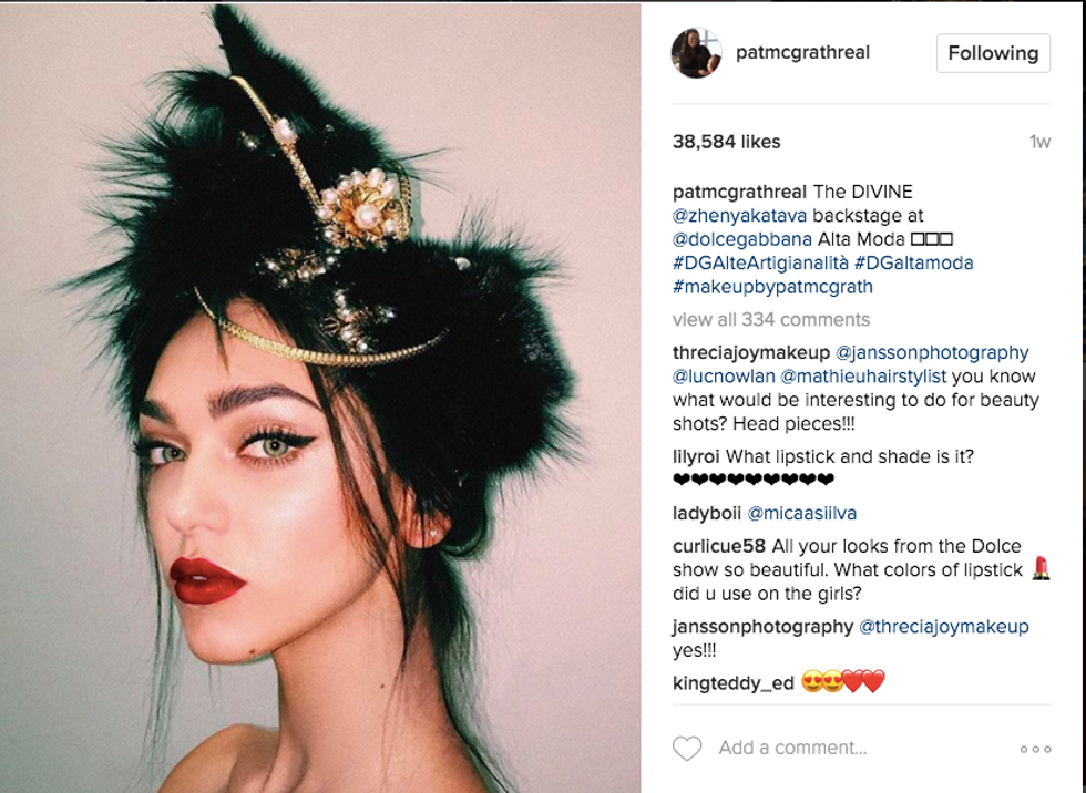Pat McGrath is a British makeup artist, named by Vogue as one of the most influential makeup artists in the world. Besides photos of her own work, McGrath also posts looks by other makeup artists, as well as paintings, fashion, and art inspiration.