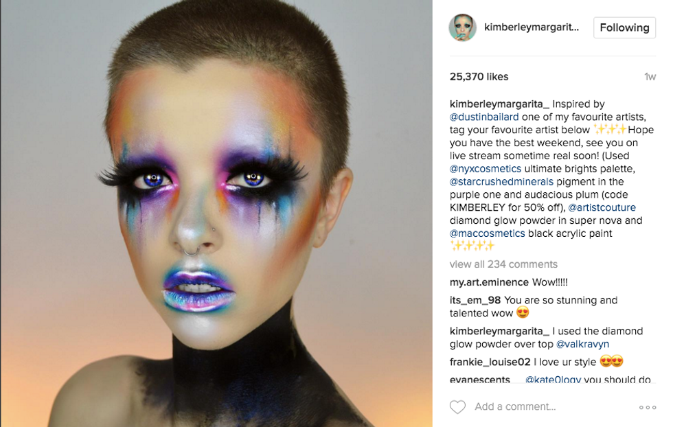 Kimberley Margarita is an insanely unique makeup artists, with colorful, outlandish looks being the rule, not the exception. She can range from glam makeup looks to full-blown mermaid. For constant color and creativity on your feed, Kimberley is a must follow account.