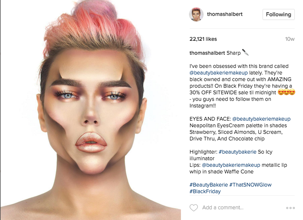 Thomas Halbert is one of the most glamorous makeup artists on Instagram. He can highlight and contour unlike anything else. Besides the wonderful glam looks, he also includes unique and creative looks like this. He does everything with a twist.