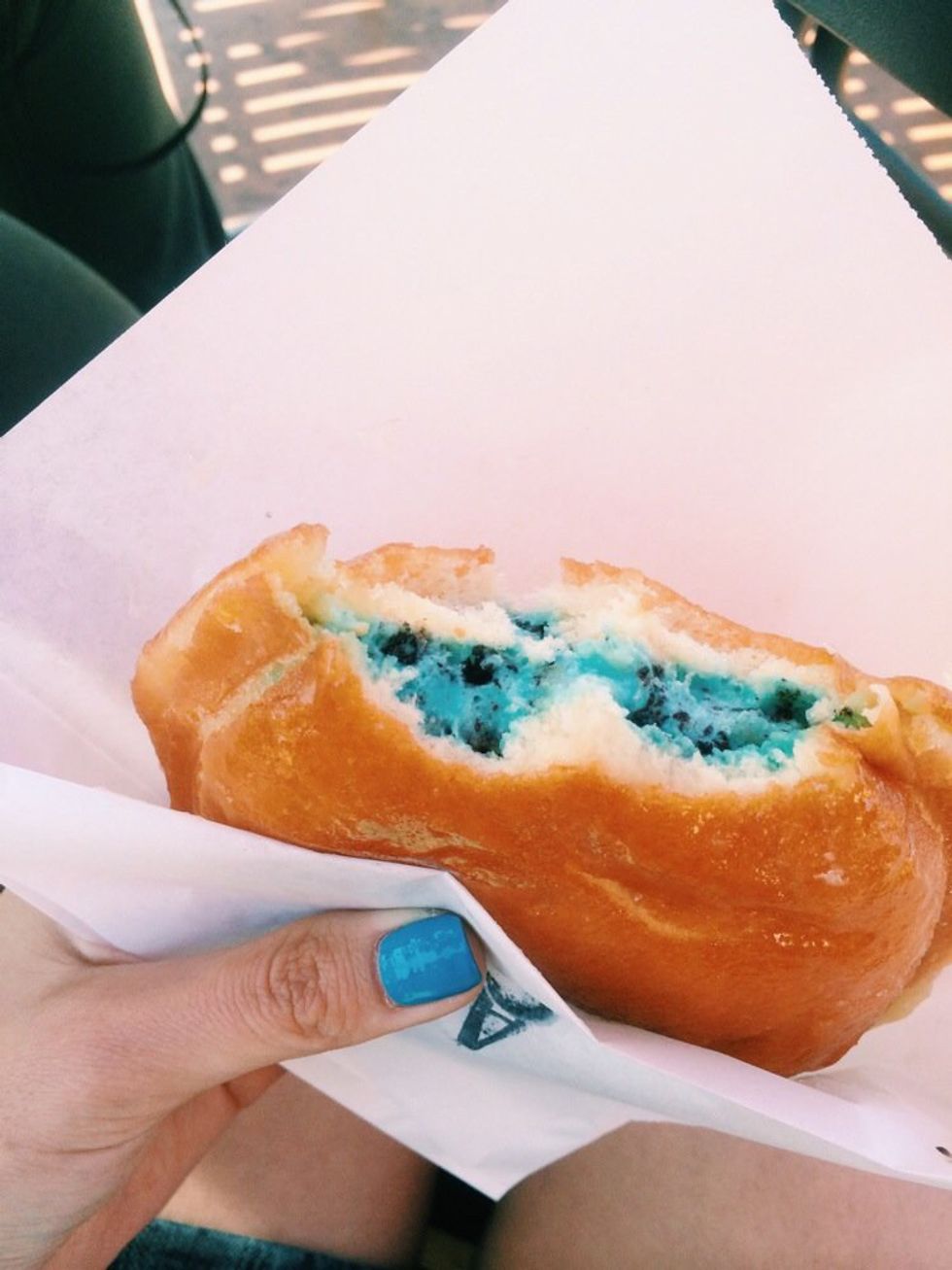 One of our first dates was to this late night dessert stop, a popular spot with a frequently long queue outside where you can order their specialty flavored ice cream either by itself or inside a donut. You heard me. A donut. Technically, it’s a ‘milky bun,’ but it’s a glazed donut all the same, and flavors like Cookie Monster, Churro, and Milk and Cereal make for a unique tasting experience. Thai iced-tea in a milky bun is recommended, and Demitri says that Cookie Monster is “basic AF,” but I think you should try it at least once.