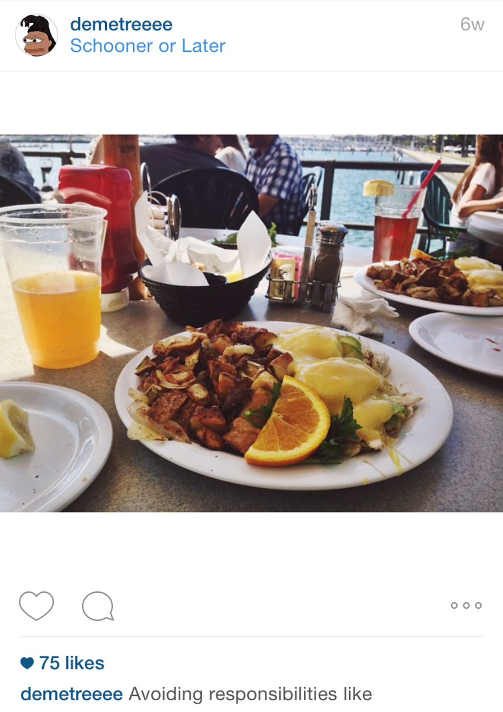 “Nothing like real crab by the docks to make you feel rich AF.” – Demitri