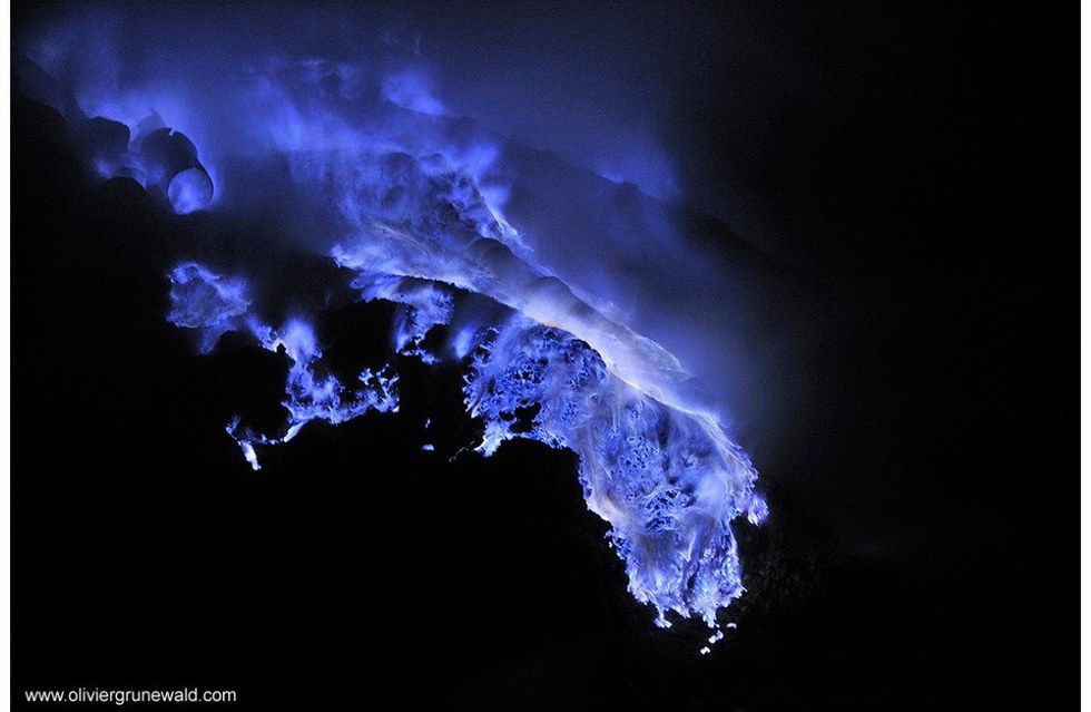2. There is a volcano in Indonesia that looks as if it has blue lava. The flames from the lava actually become blue as they react from the high amounts of sulfur on the mountain.