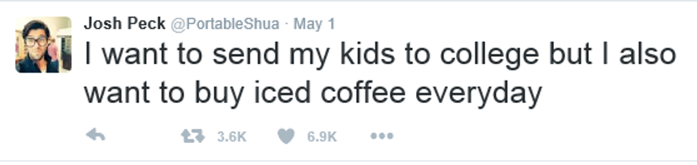 1. We all have those strugges deciding whether or not we can afford to both go to college and afford to get that Starbucks fix that is necessary to survive. As much as I love iced coffee, the prices are a bit high on a poor college student's budget.