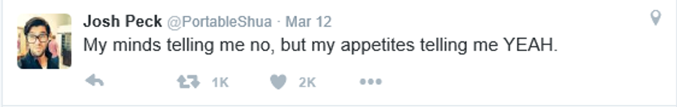 From one of the best Nikelodeon shows of our generation, "Drake & Josh," Josh Peck has one of my favorite Twitter accounts and never fails to make me laugh. He tweets about everything from relationships, food and his newer show, "Grandfathered." So here are 10 Josh Peck tweets that I feel we can all relate to: