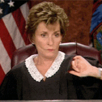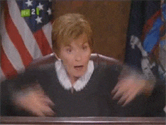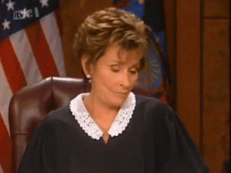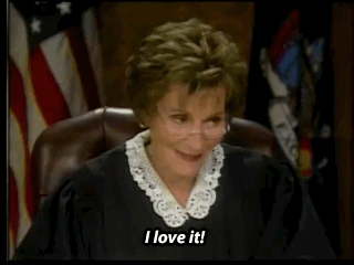 September 16th, 2016 marks the 20th anniversary of my favorite show that I start watching because it's a Saturday afternoon and I am bored at home. Yep! You guessed it, Judge Judy (2nd place Maury, 3rd place Jerry Springer, don't judge) It would seem sacrilegious not to show my appreciation to the Honorable Judge Judith Sheindlin for her 20 years of hilarious cases with ridiculous plaintiffs and defendants! So to celebrate, here are 18 gifs of Judge Judy to use in your everyday life!