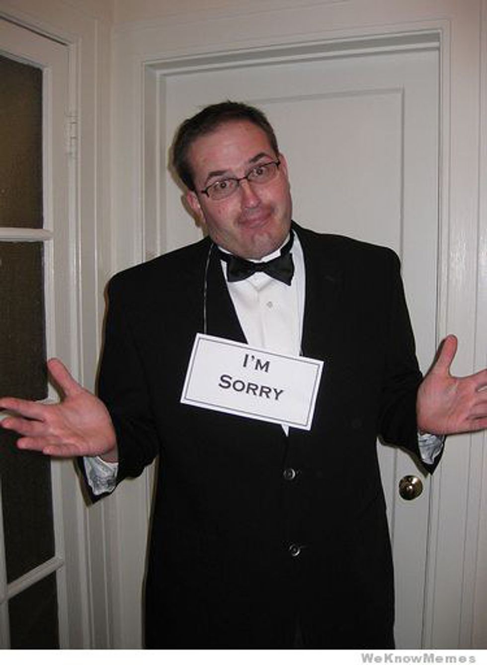 Funny AND easy... just put on your Sunday best and slap on an "I'm Sorry" name tag and you're good to go!