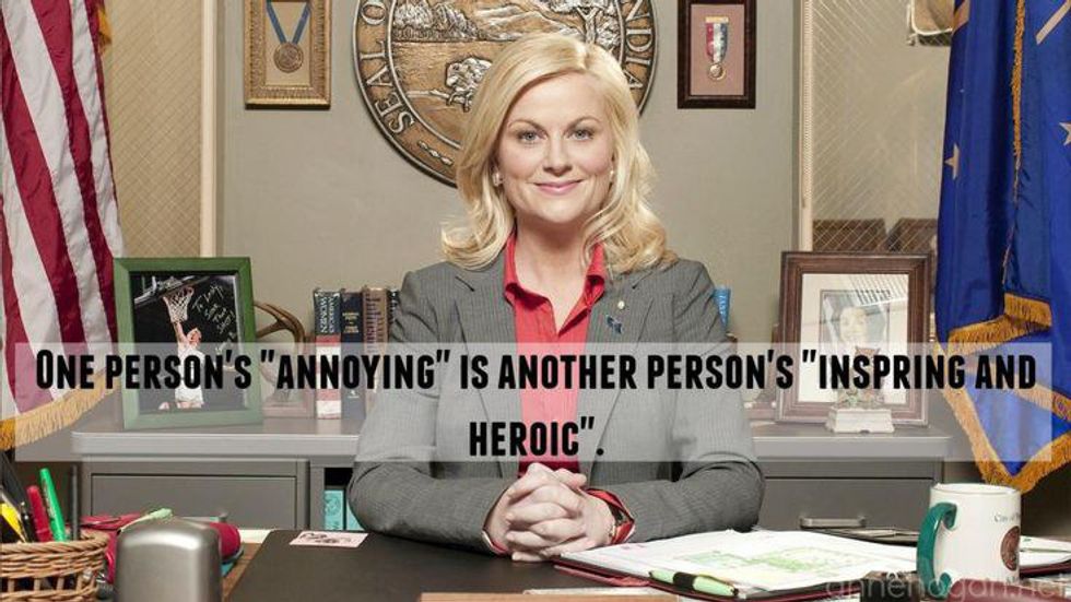 If you've never seen the hilarious, pee your pants, out of control giggling inducing sitcom, Parks and Rec, you're missing out on not only quality humor but also on one of the best pop culture icons for young women. Leslie Knope (Amy Poehler) is the most badass, confident, waffle-loving feminists around. And if you're a gal in college, you should consider emulating her spunky personality. Take notes ladies.