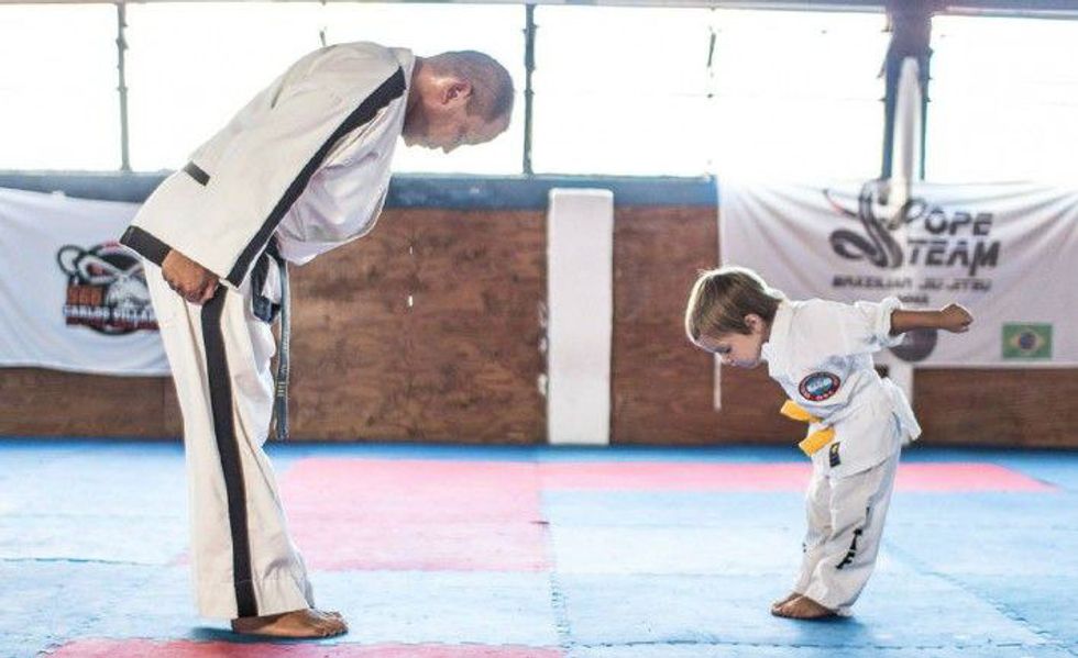 Everyone deserves respect. No matter the age, gender, size, social class or any other factor, we always bow before and after sparring. We always bow to the teacher at the beginning and end of class. People deserve respect, and that goes for any part of life.