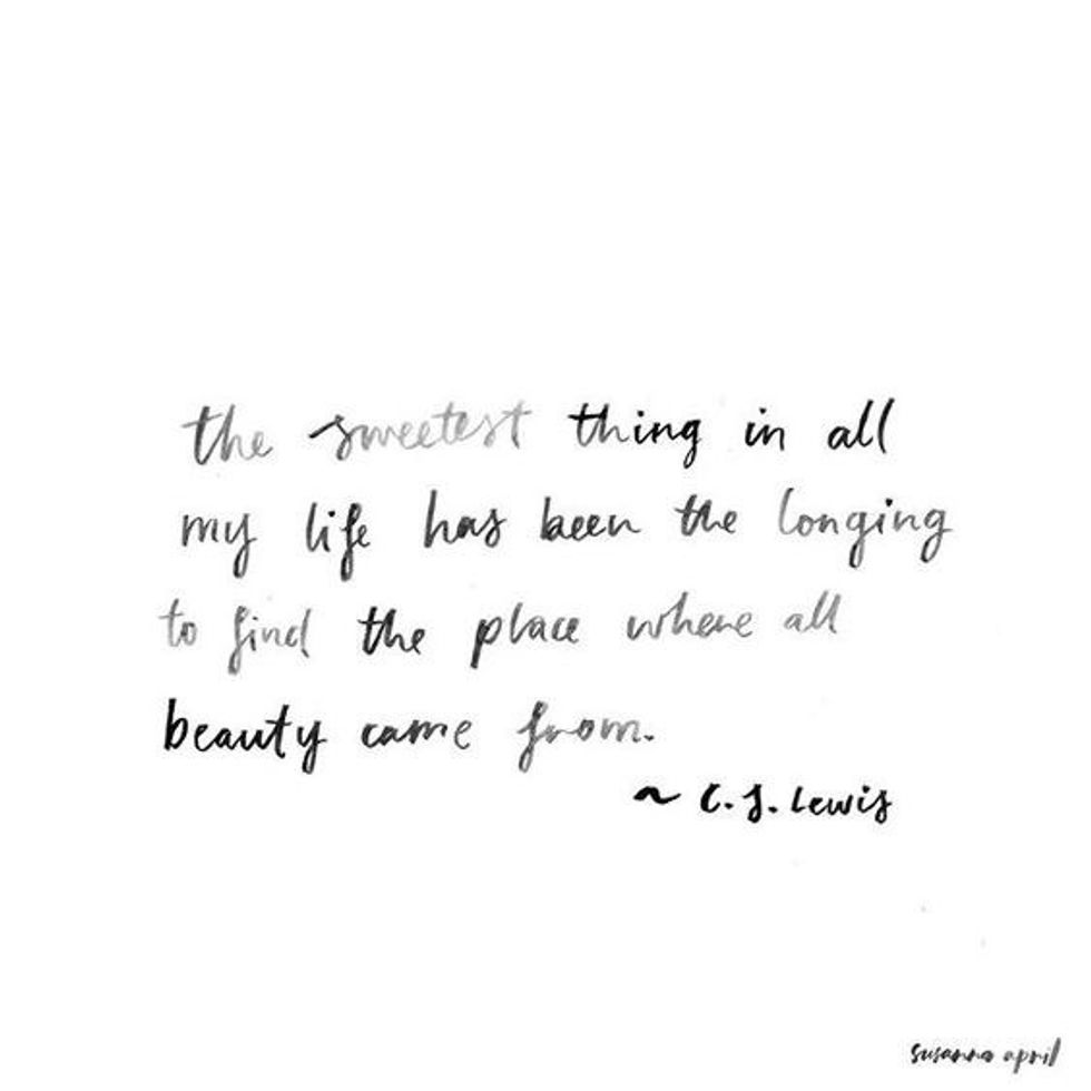 I could never fully express to you how much I relate to this quote and how it speaks to me. It is deeply connected to my soul. The longing for the source of all beauty is an intense and painfully sweet longing to have. Beauty is so important. One day, we shall know its source. Christ, come quickly.