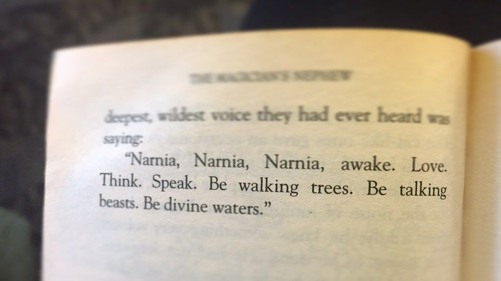 "Narnia, Narnia, Narnia, awake. Love. Think. Speak. Be walking trees. Be talking beasts. be divine waters."