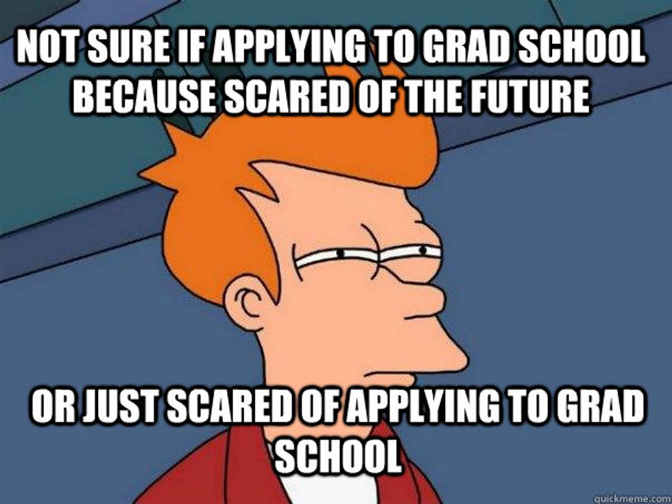 This process is very painful, but worth it if you're looking to further pursue education. The one step that kills a lot of people is taking the GRE, which is required by many grad schools. It's like the SAT, but on steroids. Good luck to those of you who are applying to grad school and studying for this exam.