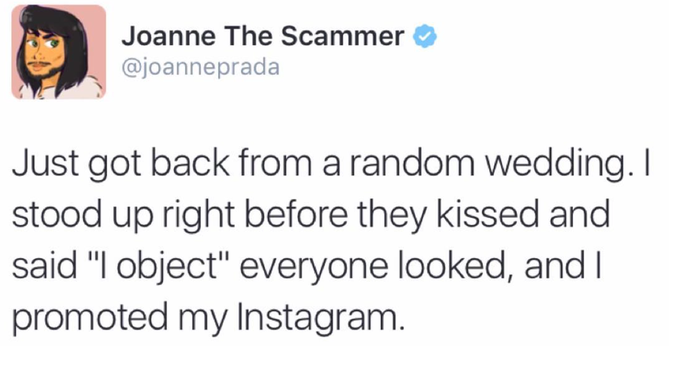 I initially and unexpectedly came across Joanne the Scammer on Twitter when I saw this short video that launched her into stardom: